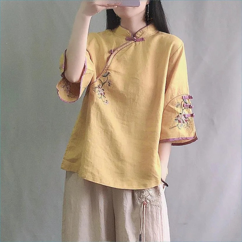 伝統的なチャイナ服のデザインを取り入れた上品なブラウスです。