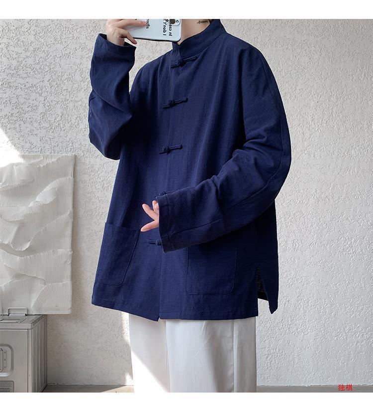 立襟デザインと四つの唐装釦が東洋的な雰囲気を演出し、ゆったりとしたシルエットで着心地も抜群です。