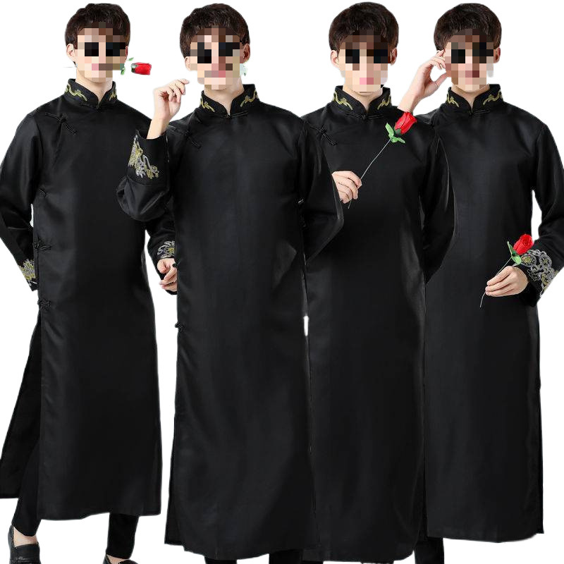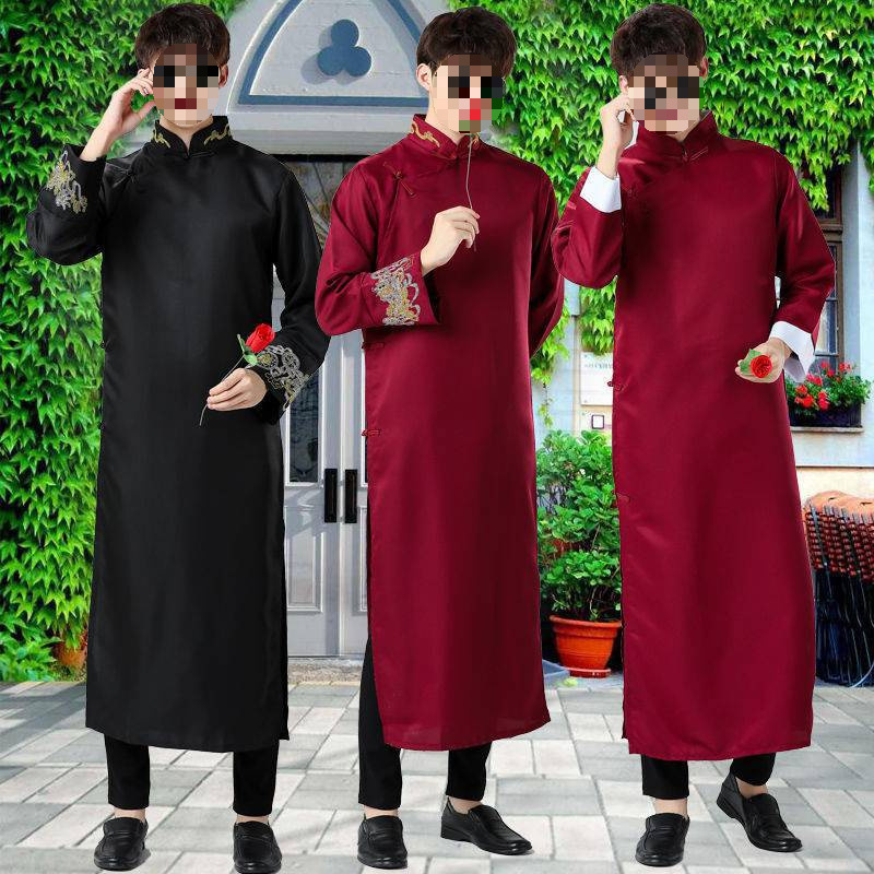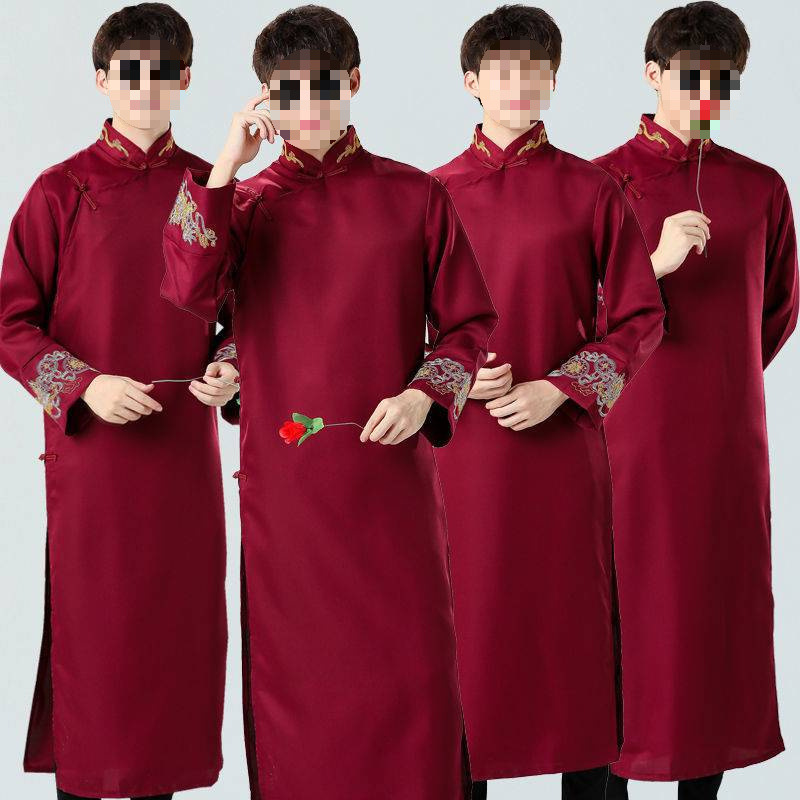立ち襟と斜め前合わせが特徴的で、袖口と胸元には精巧な刺繍装飾が施されています。