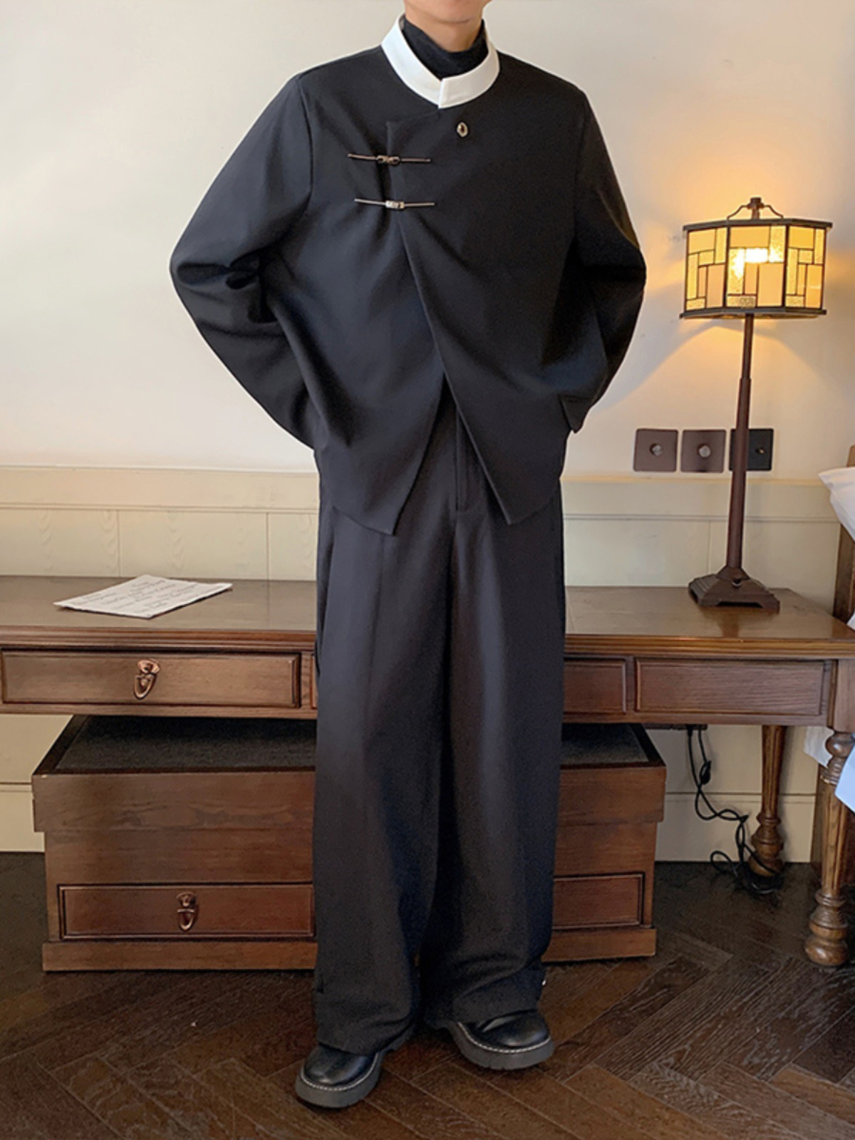 中国風の襟元と現代的なシルエットが融合した個性的なデザインで周囲と差をつけられます。