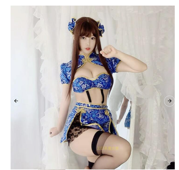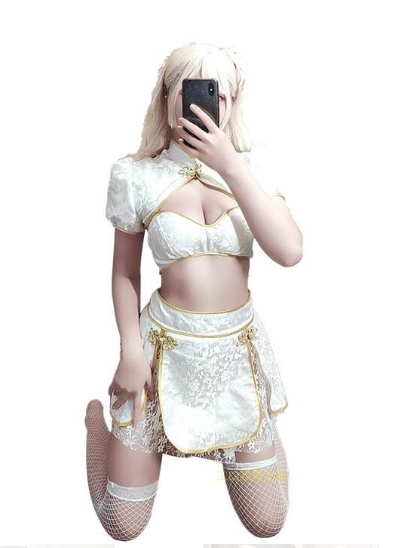 繊細なジャガード柄と淡いミントブルーが印象的な、チャイナテイストのセクシーコスチューム。伝統的なデザインをベースにしながら、現代的なシルエットで女性らしい美しさを最大限に引き立てます。