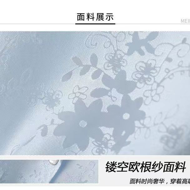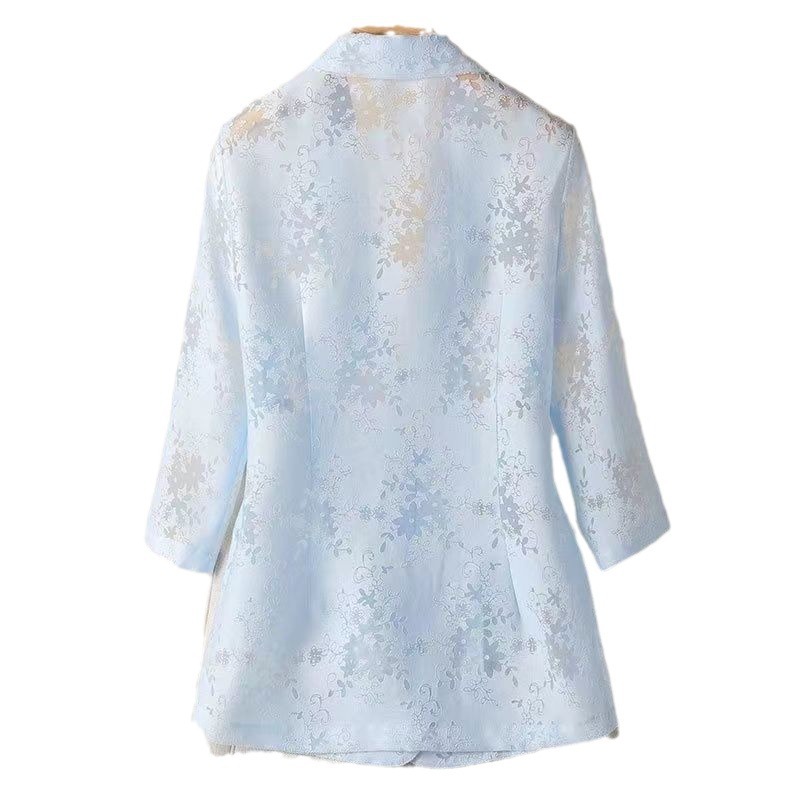 透け感のある生地に施された美しい花柄が、女性らしい優雅な雰囲気を演出します。