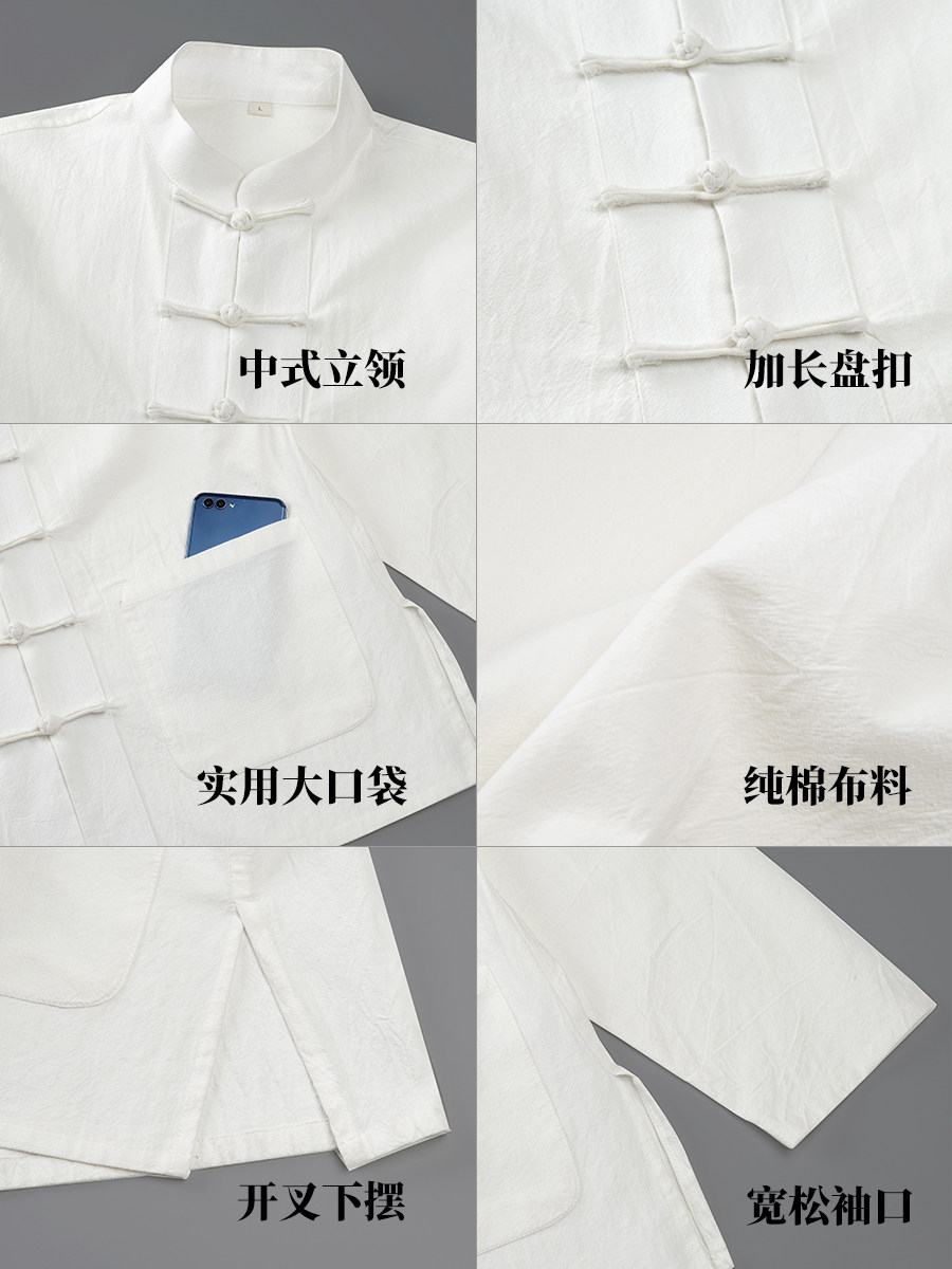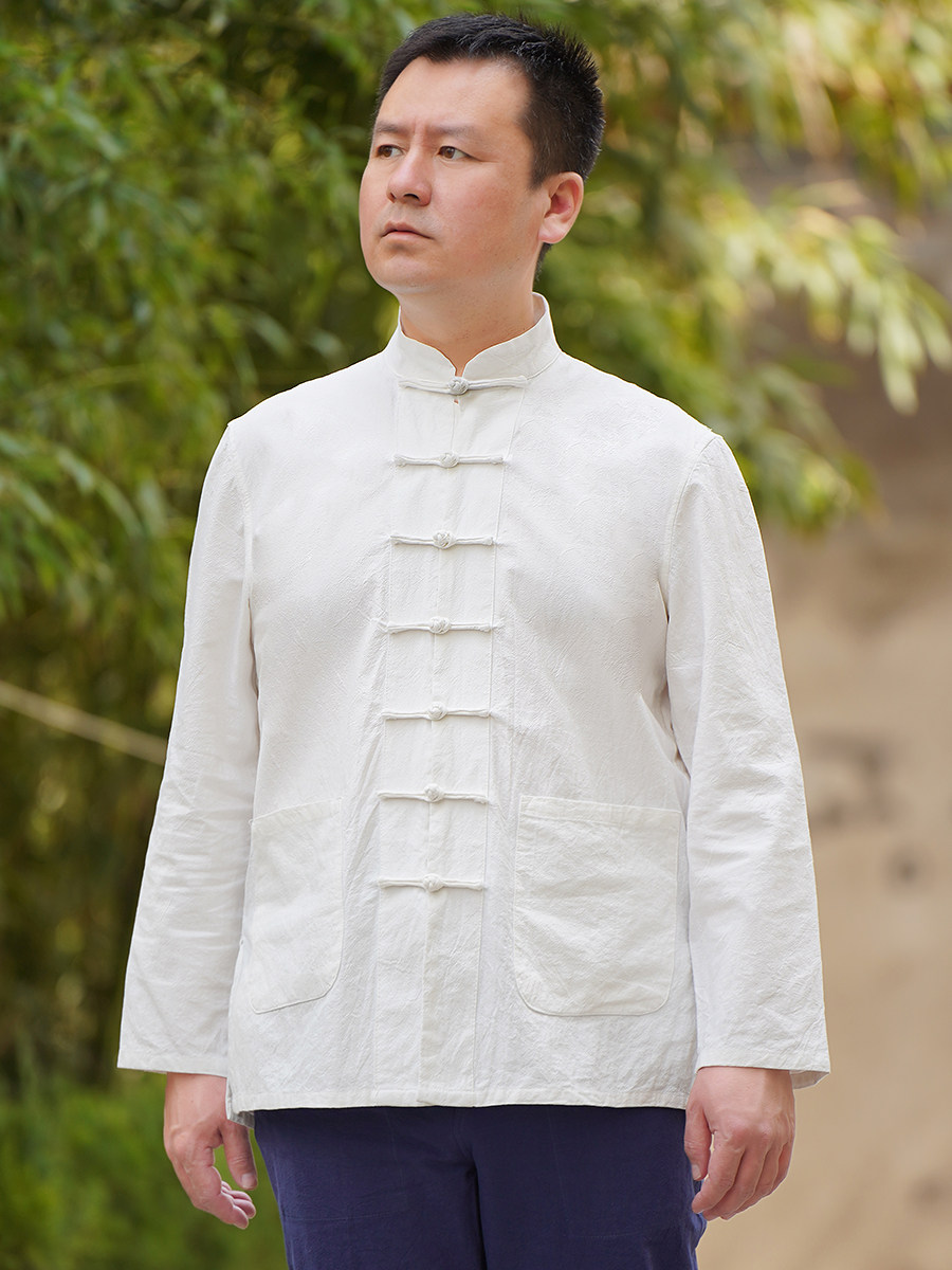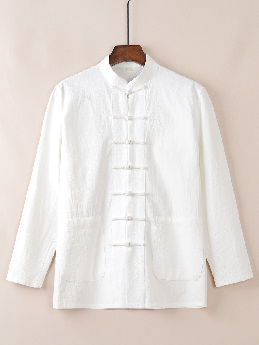 伝統的な中式立襟と美しいチャイナボタンが特徴的なチャイナ服シャツです。