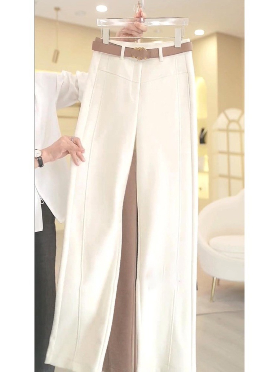 ハイウエストデザインで脚長効果が期待でき、ゆったりとした裾幅が優雅な雰囲気を演出します。