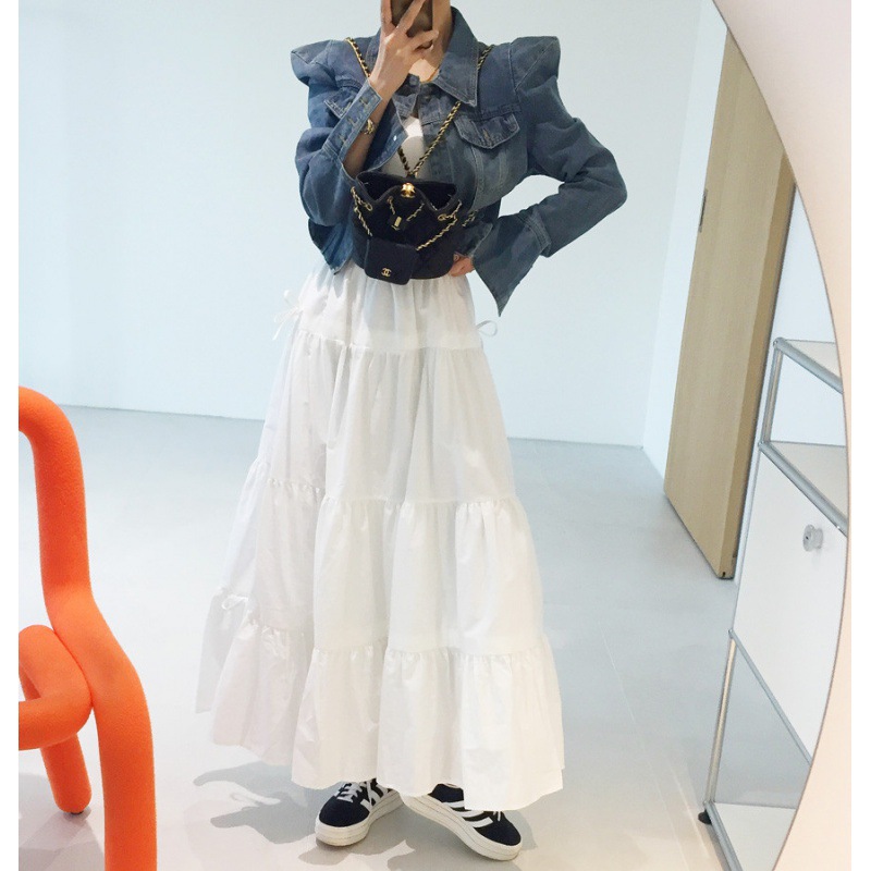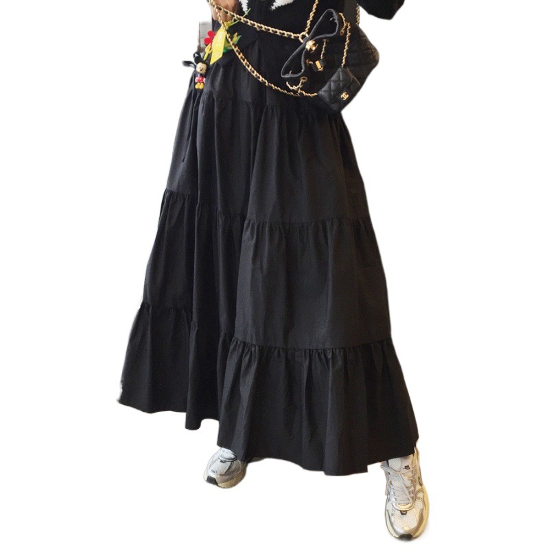 何層にも重なるフリル状の段々が立体感を演出し、歩くたびに美しく揺れる上品な仕上がり