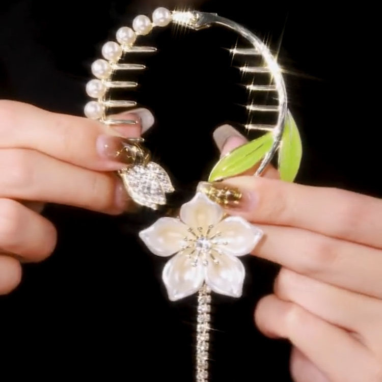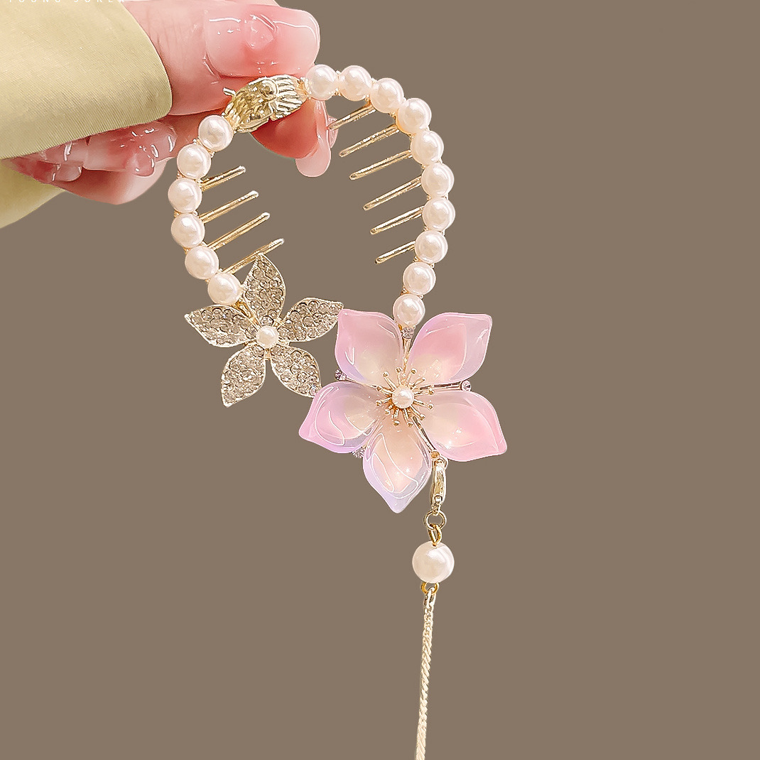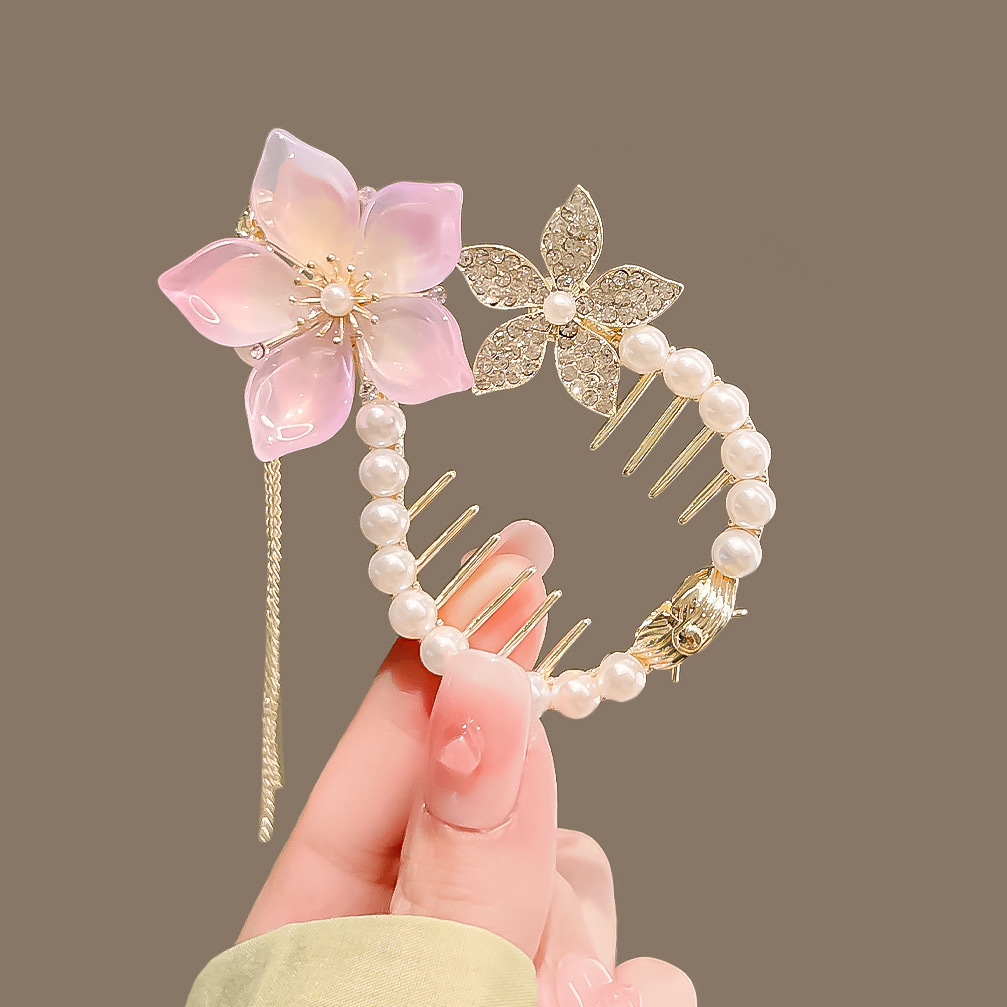 清楚な桜の花モチーフと煌めく輝石のタッセルが優雅に揺れる髪飾りです。