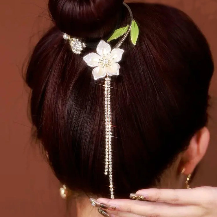中心に配した花弁と繊細な葉のデザインが、チャイナ服との相性抜群で華やかな印象を演出します。