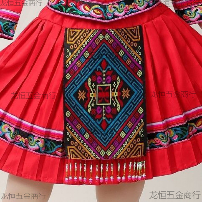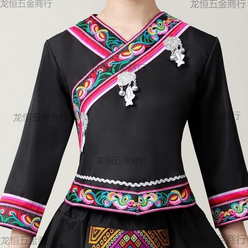 斜めに配された色鮮やかな刺繍テープと銀色の飾り紐が印象的なデザインで、民族衣装の魅力を存分に感じられます。