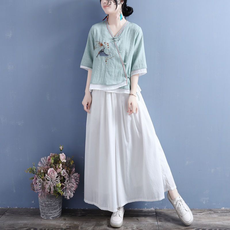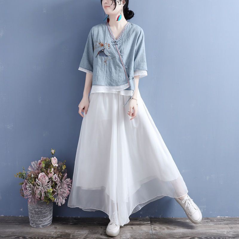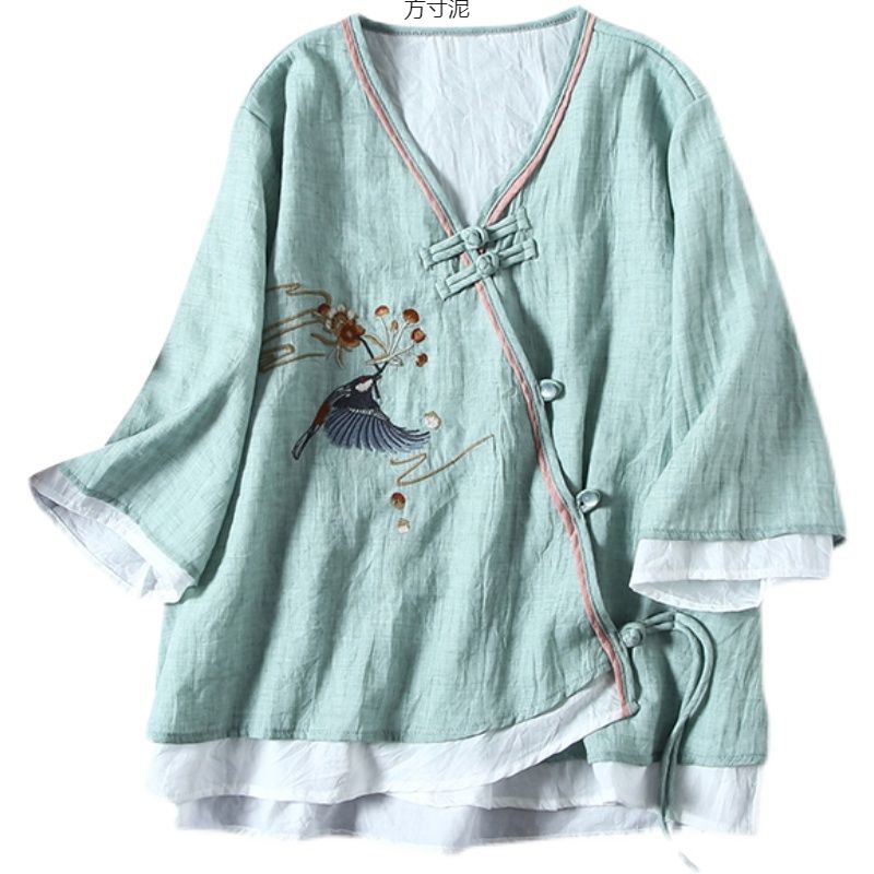 優雅な鶴の刺繍が施された上品なチャイナ服デザインのブラウスです。