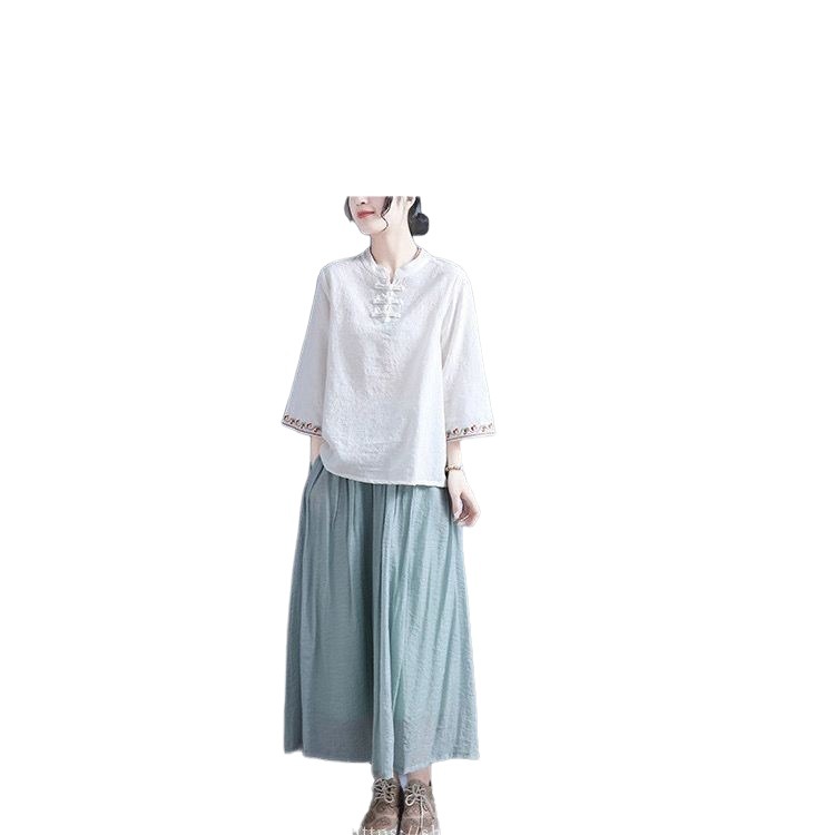 胸元には美しい刺繍模様が施され、チャイナボタンがアクセントになっています。
