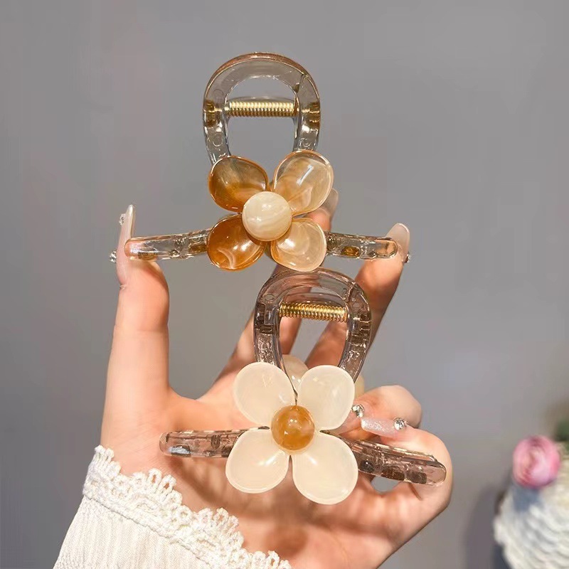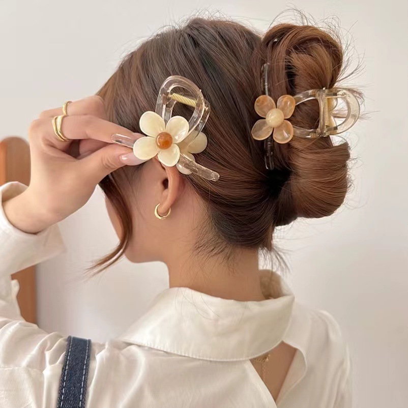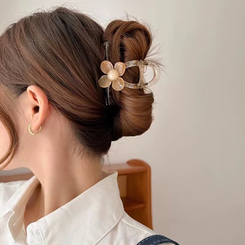 透明感のある素材と立体的な花弁モチーフが魅力的な大型バンスクリップです。