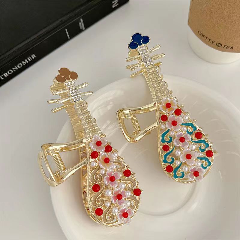 伝統的な琵琶の形を取り入れた上品で文化的な雰囲気を演出する髪飾り