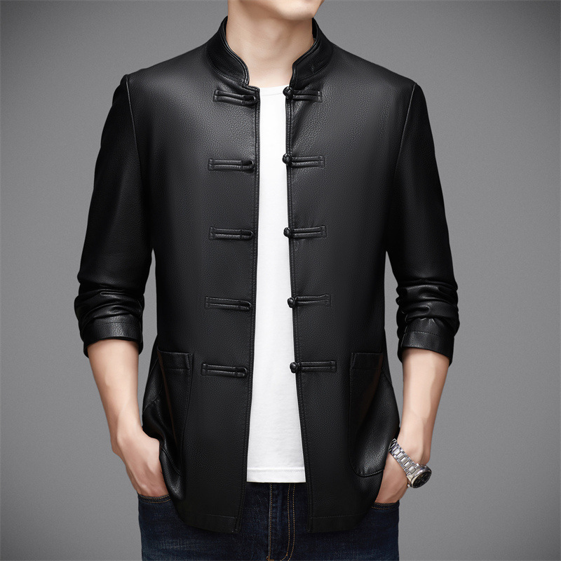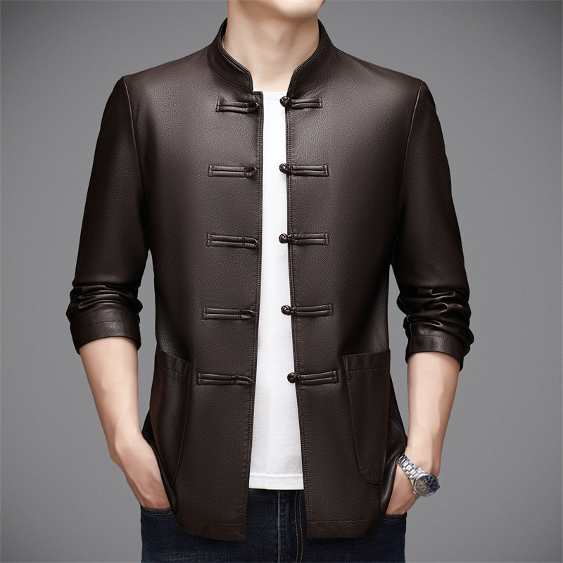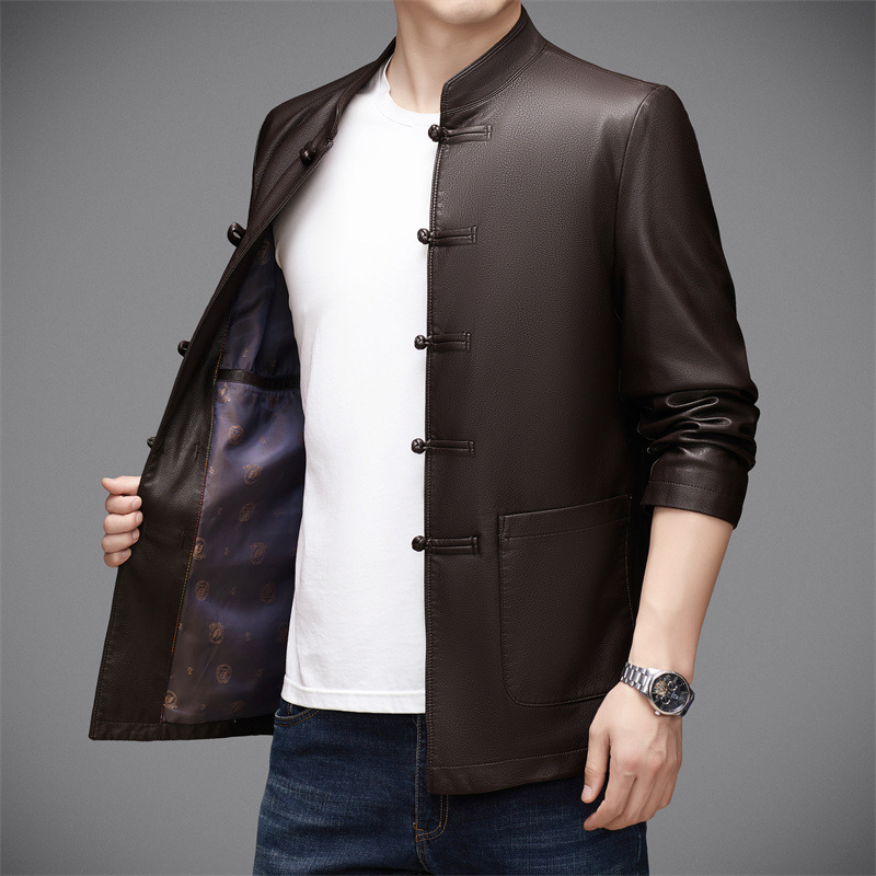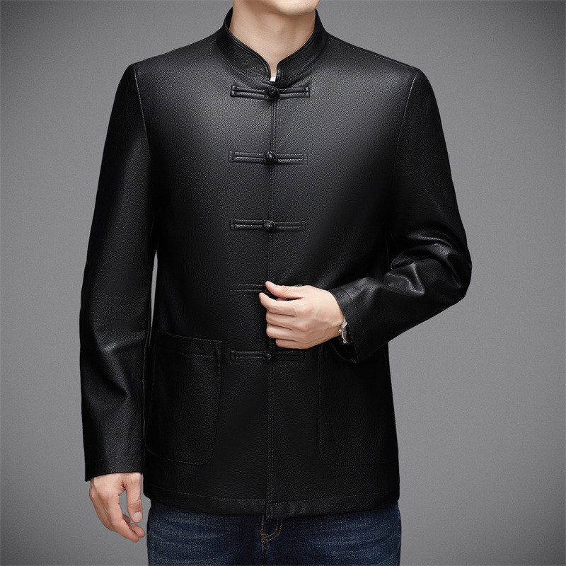 伝統的なチャイナ服のデザインを本革で仕上げた高級感あふれるシャツです。