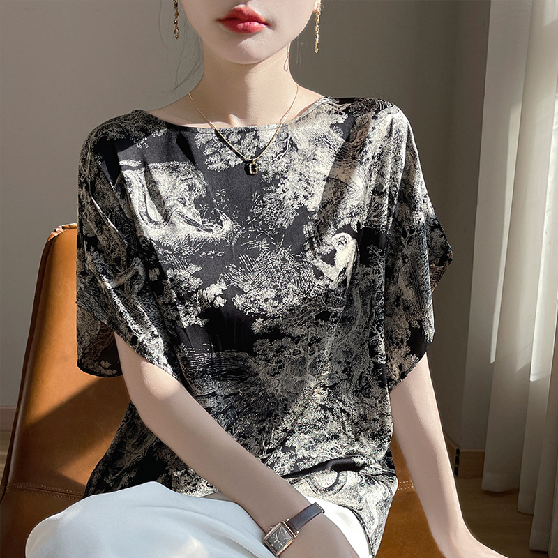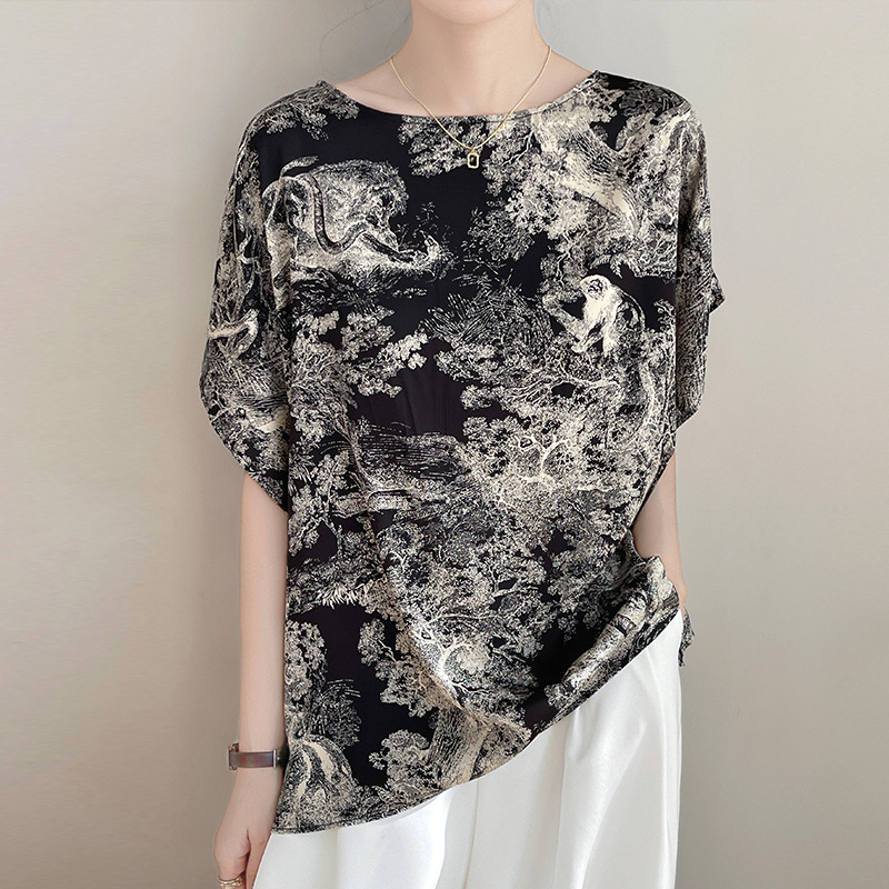 伝統的な龍と鳳凰の水墨画風デザインが特徴的なチャイナ服シャツです。