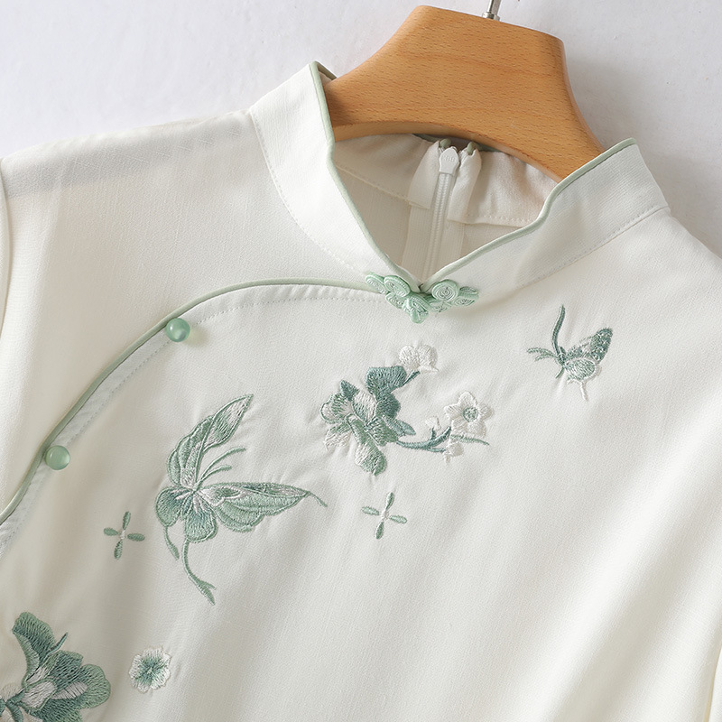 日常着から特別な日のおでかけまで、幅広いシーンで活躍する上質なチャイナ服セットアップです。