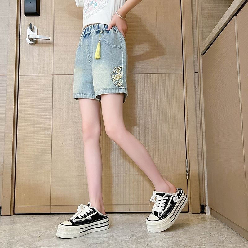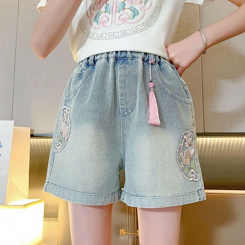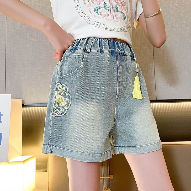 両サイドに施された繊細な刺繍が東洋の雰囲気を演出し、ウエストには可愛らしい房飾りがアクセントとして揺れます。