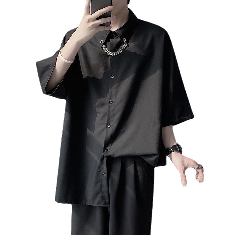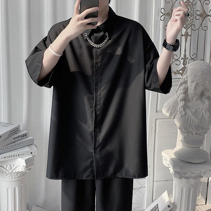 シンプルなブラックに、さりげない個性が光るチャイナ風シャツ。 落ち着いた光沢感のある素材が、上品で洗練された雰囲気を演出してくれます。 フロントのチャイナボタンがアクセントとなり、シンプルながらも印象的な仕上がりに。 ゆったりとしたシルエットと五分袖デザインで、リラックス感のある着心地も魅力です。 一枚でさらっと着るだけで、こなれたスタイルが完成。 モードにもカジュアルにも合わせやすく、普段使いからちょっとしたお出かけまで幅広く活躍してくれる一着です。