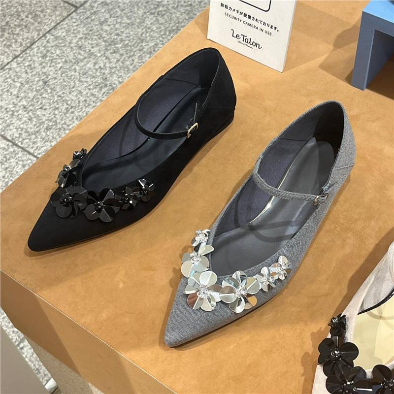 足元にそっと華やぎを添える、フラワーモチーフのフラットシューズ。