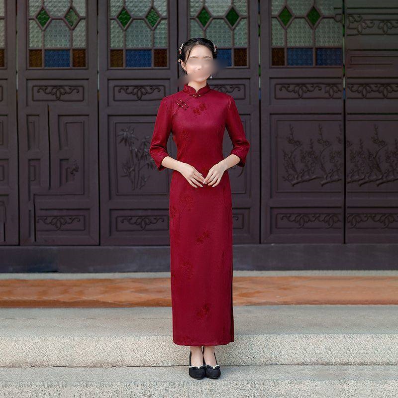伝統的な立襟デザインと華やかな刺繍が魅力のチャイナ服です。