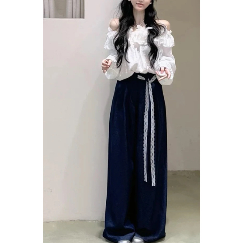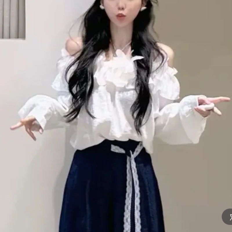 オフショルダーデザインの上品なブラウスは袖にボリューム感があり女性らしさを演出します。