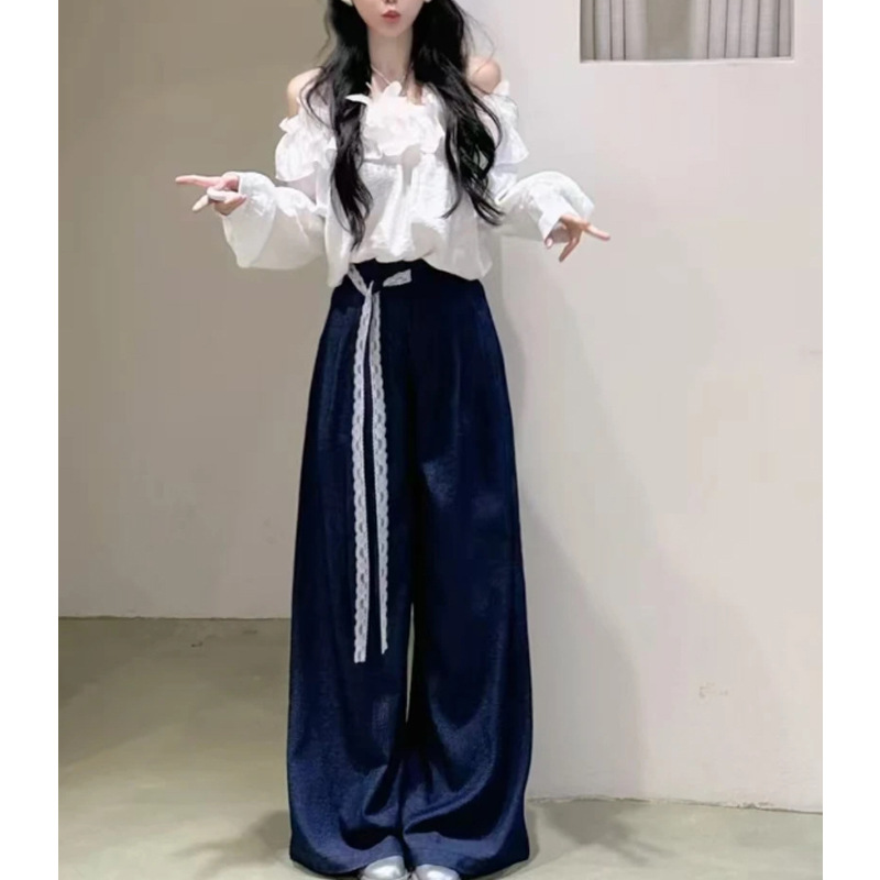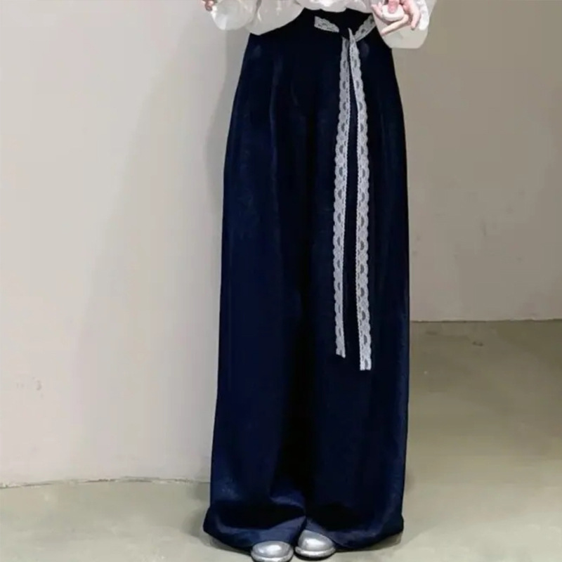 ゆったりとしたワイドパンツはウエストにあしらわれた紐が個性的なアクセントになっています。