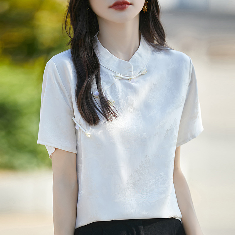 やわらかな光をまとったような、上品で涼やかなブラウス。