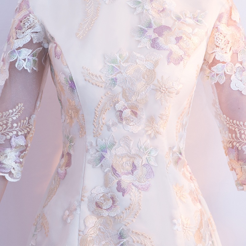 繊細な花柄刺繍が全体に施された上品なチャイナ服です。