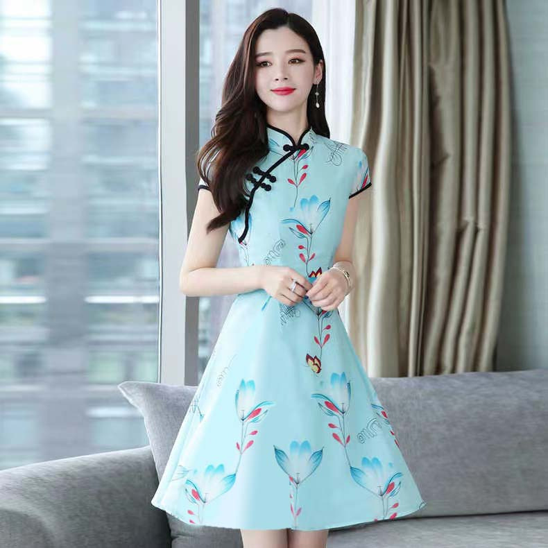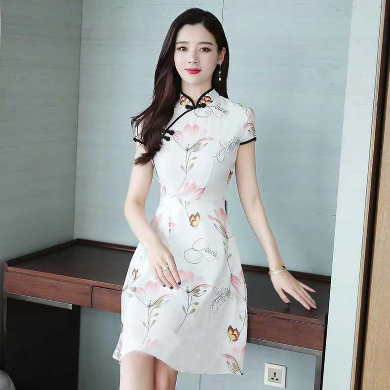 優雅な花柄と蝶のモチーフが全体に散りばめられた上品なチャイナ服です。 伝統的なチャイナボタンと立ち襟が特徴的で、半袖デザインが女性らしさを引き立てます。 すっきりとしたシルエットで体のラインを美しく見せ、裾に向かって広がるフレアラインが軽やかな印象を演出します。 日常使いから特別な日のお出かけまで幅広く活躍するワンピースです。 柔らかな素材で着心地も抜群、エレガントな雰囲気を楽しめる一枚です。