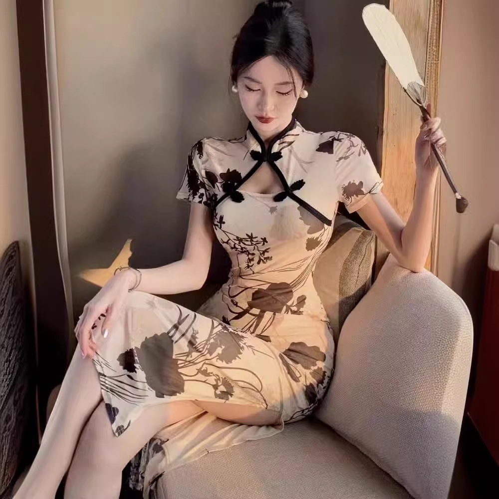 すっきりとしたシルエットとチャイナ風のデザインが、女性らしいラインを美しく引き立て、着るだけで凛とした印象に。ほどよく体に沿うフィット感で、上品さと色気をさりげなく演出します。