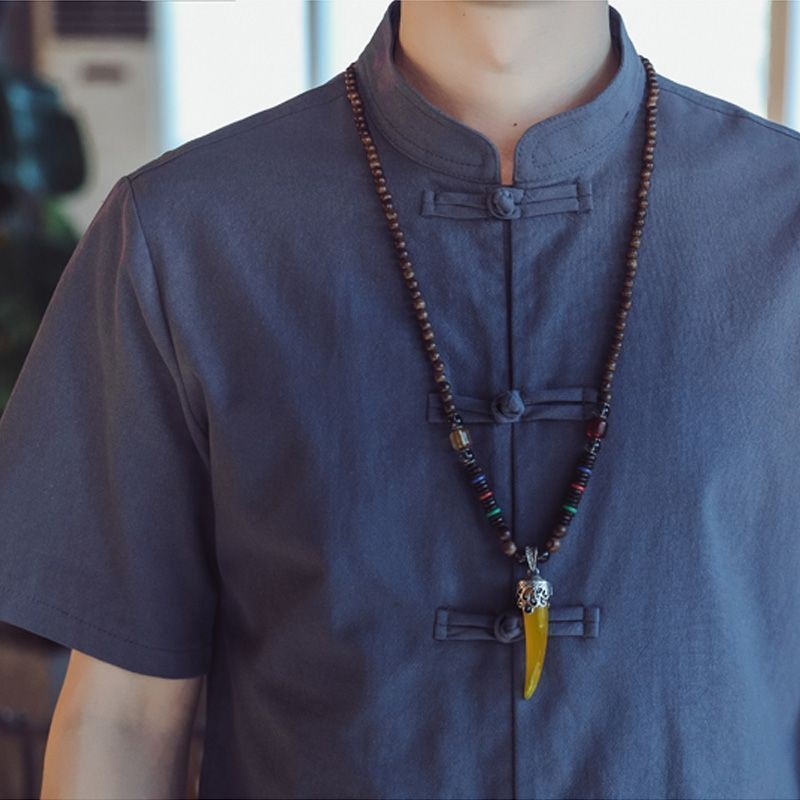 フロントのチャイナ風ボタンがさりげないアクセントとなり、控えめながらも個性を感じさせるデザインに仕上がっています。ゆったりとしたシルエットで、体のラインを拾いにくく、自然体で着こなせるのも嬉しいポイントです。
