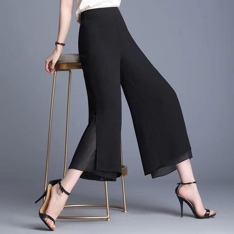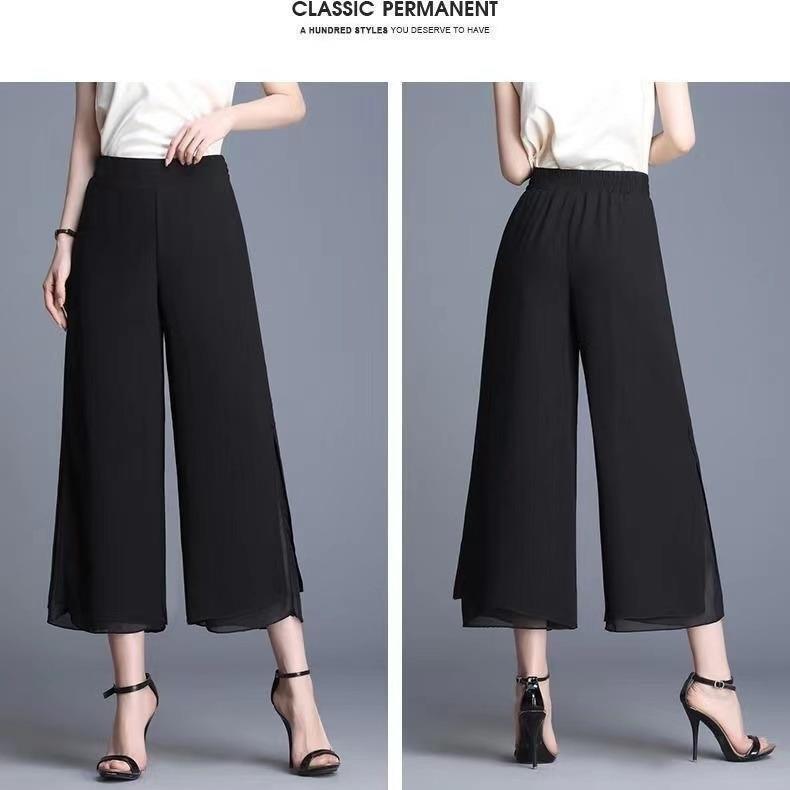 軽やかなシフォン素材を使用した上品なワイドガウチョパンツです。