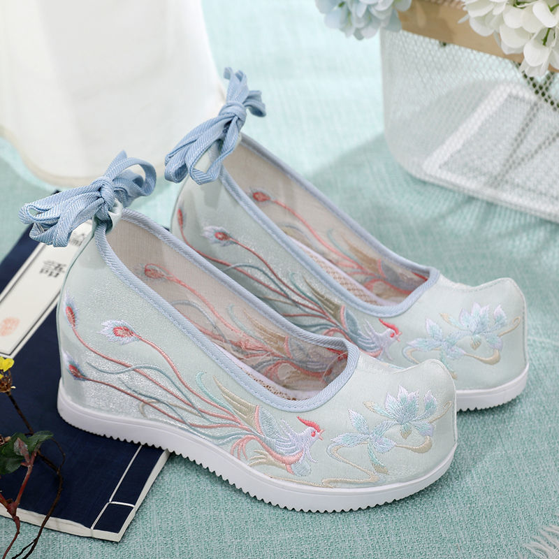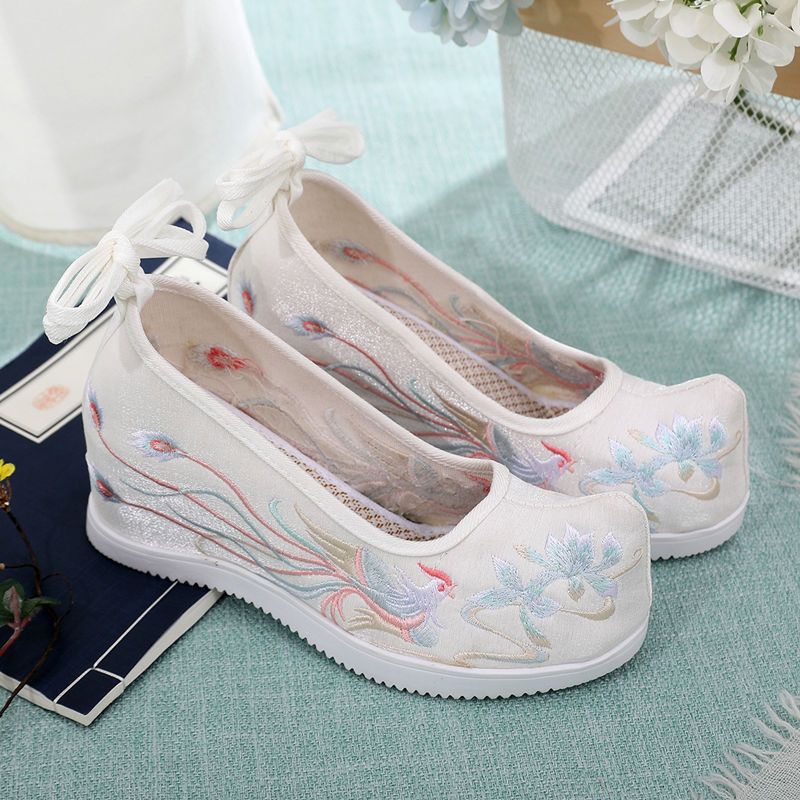 優雅な鳳凰と蓮の花を精緻な刺繍で表現したチャイナ服に最適なシューズです。