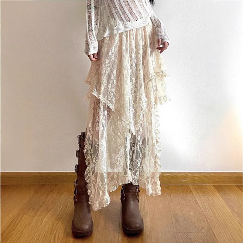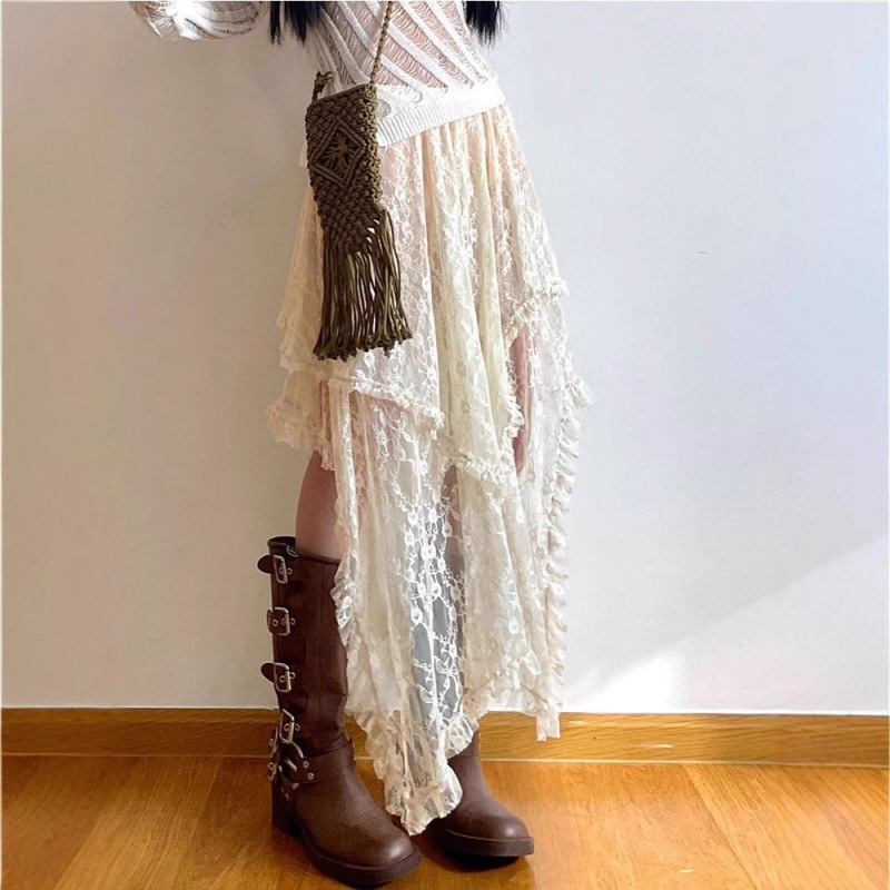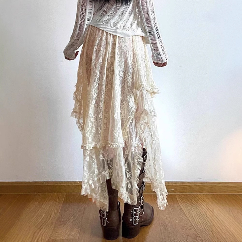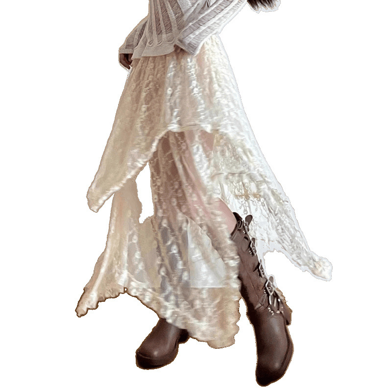 不規則なフリルデザインの裾が動くたびに優雅に揺れ、女性らしさを演出します。