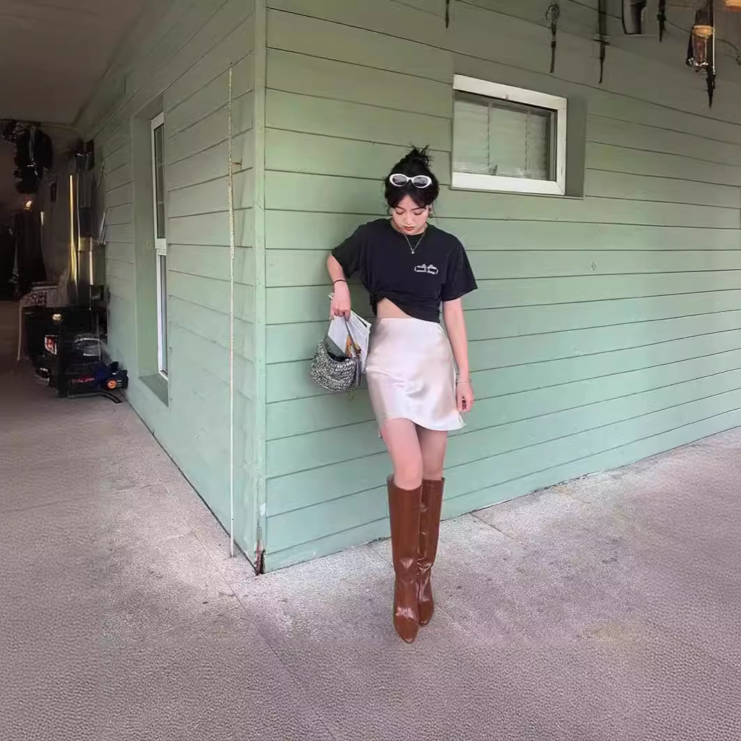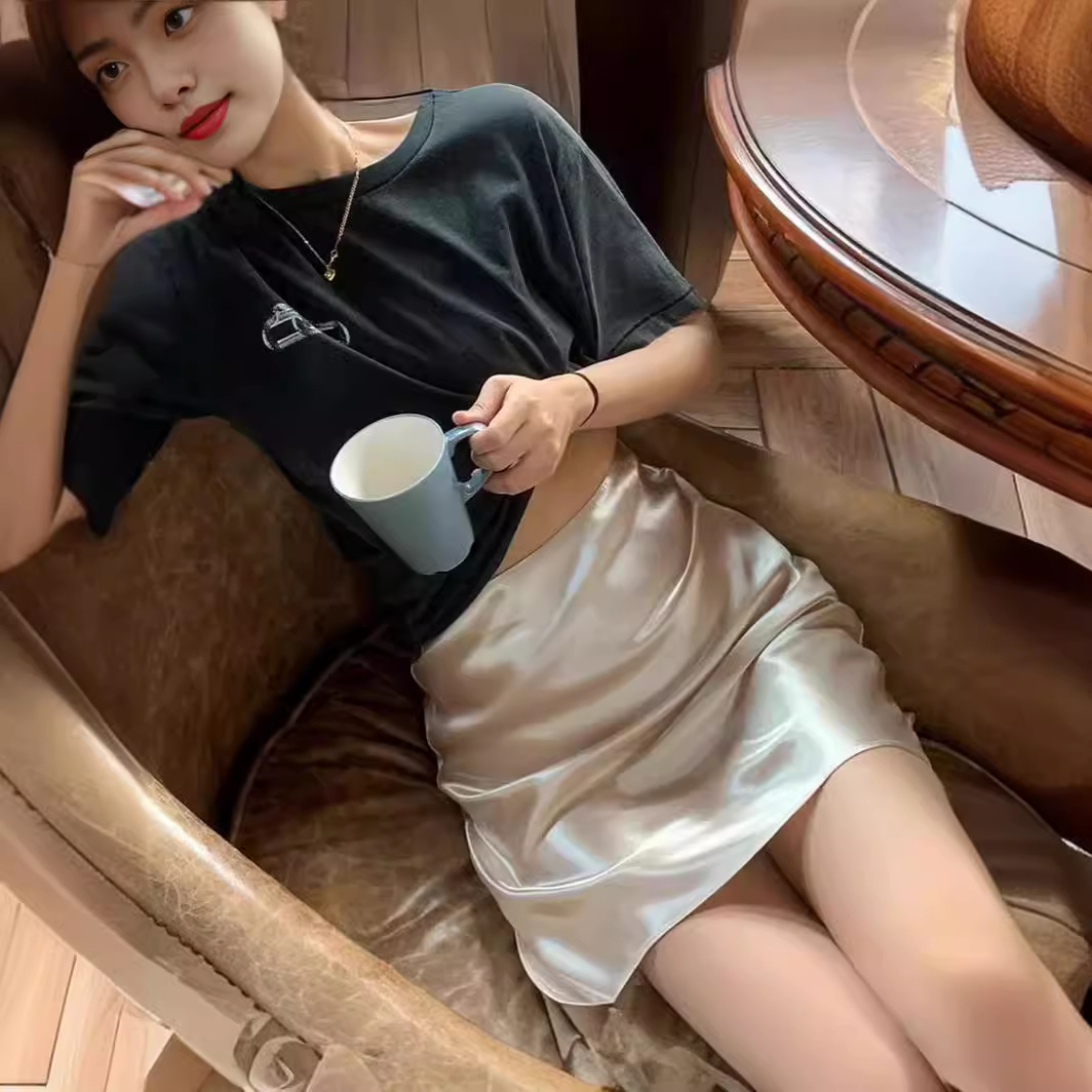 柔らかな光沢感が美しいサテン調の生地を使用したミニ丈スカートです。