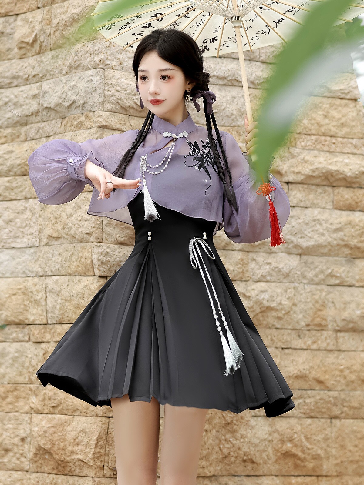 伝統的なチャイナ服の要素を取り入れた現代風セットアップです。