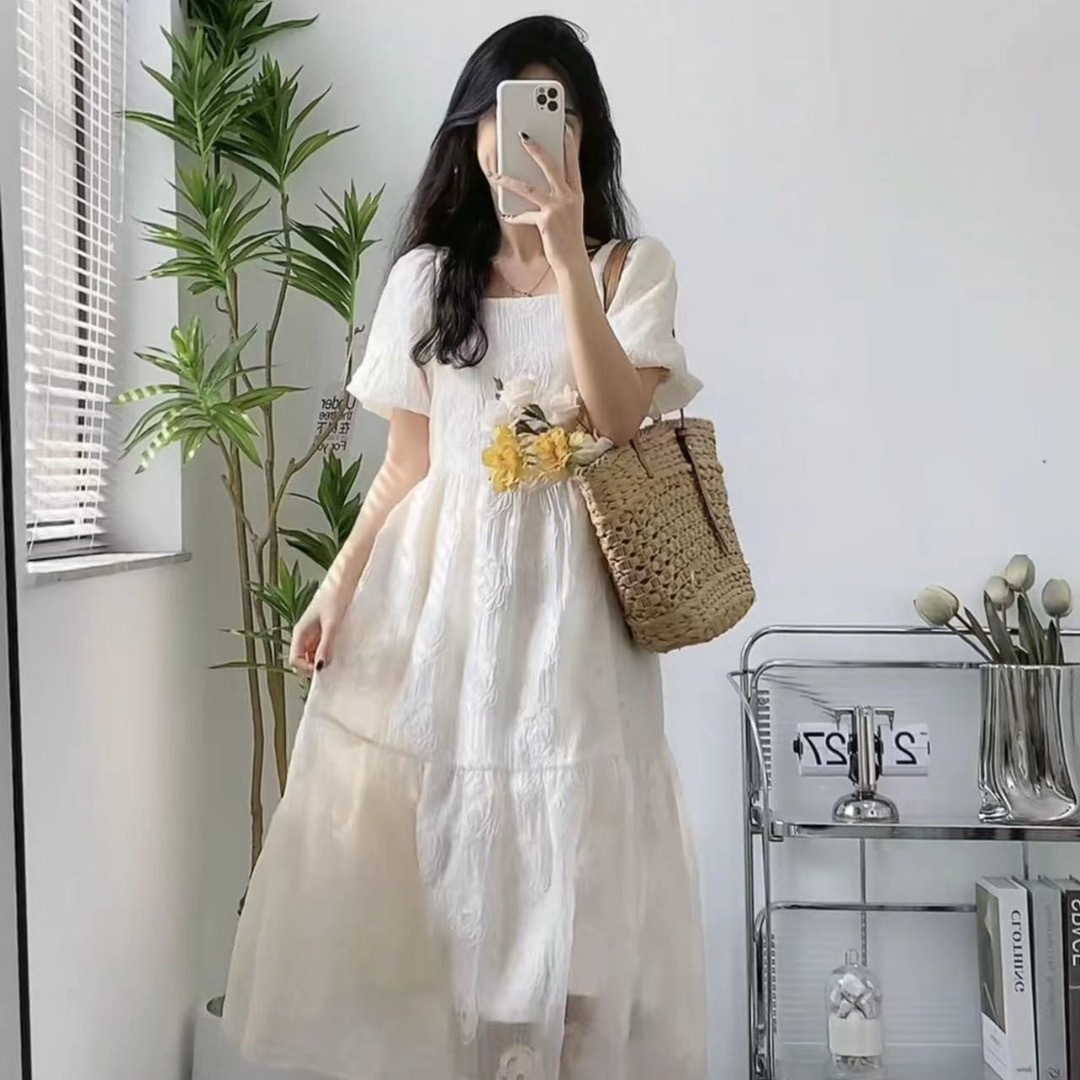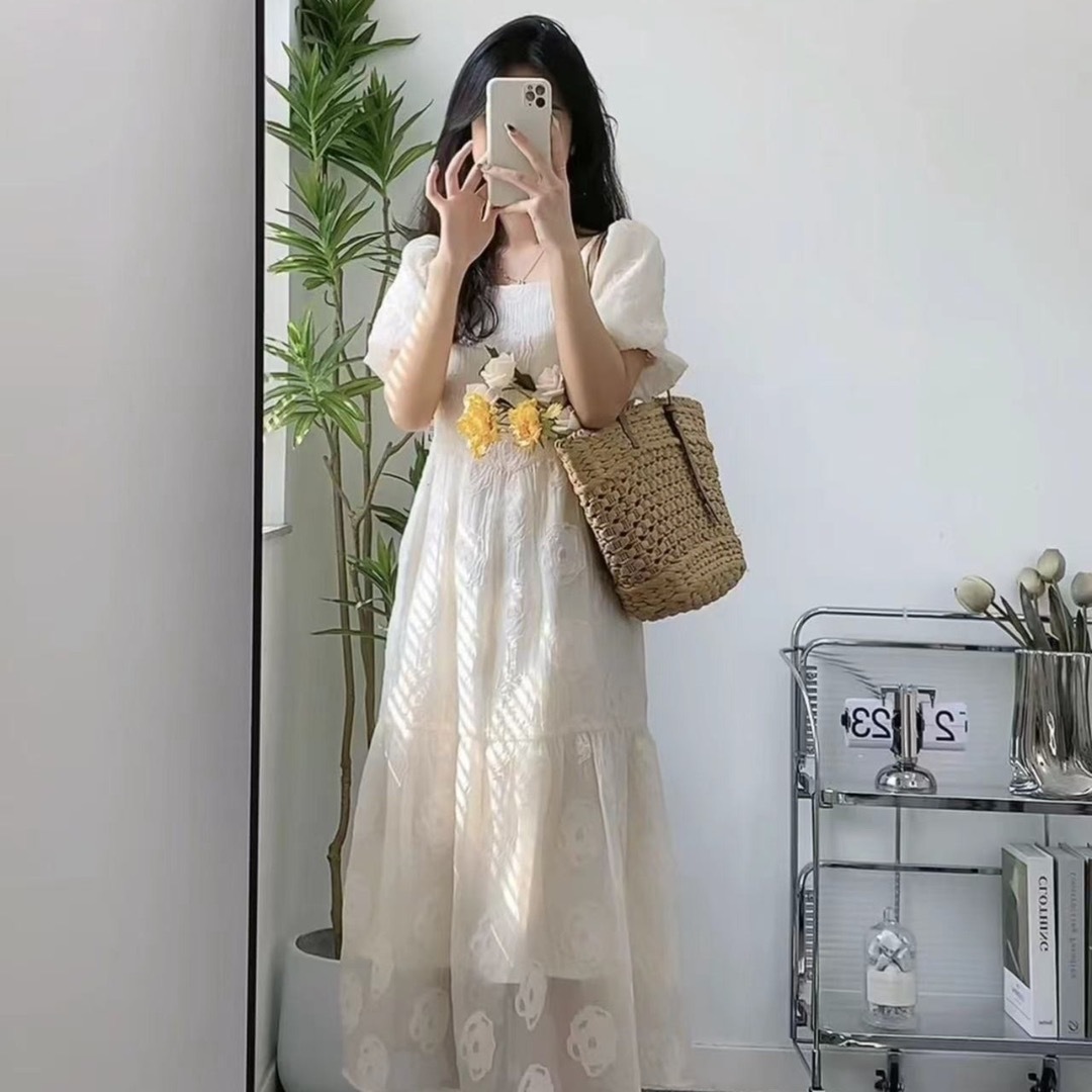 -10%繊細な刺繍が施された華やかなチャイナ服デザインのワンピースです。 ふんわりとしたパフスリーブと、ティアード状に重なるスカートが優雅な雰囲気を演出します。 胸元の立体的な花柄刺繍が上品なアクセントとなり、特別な日のお出かけにもぴったりです。 ゆったりとしたシルエットで着心地も快適、春夏のお出かけスタイルを格上げする一着です。