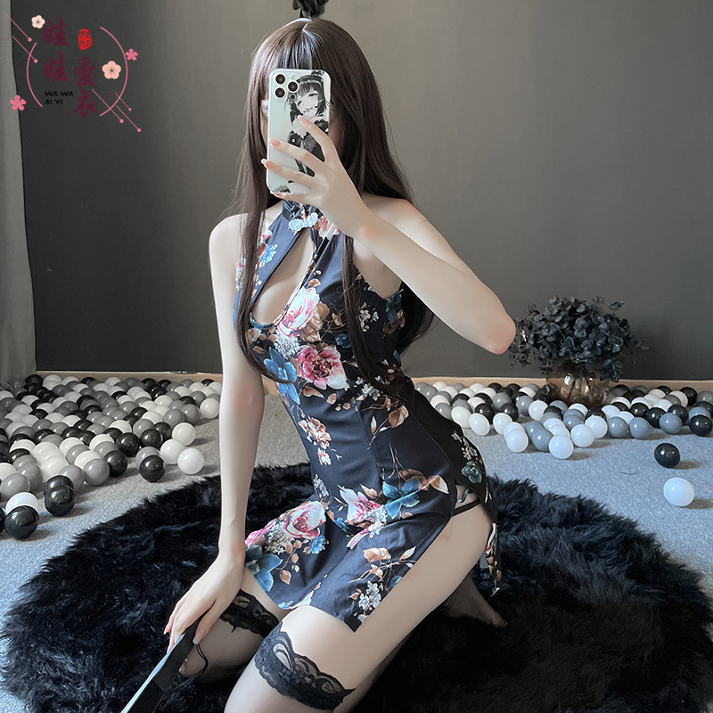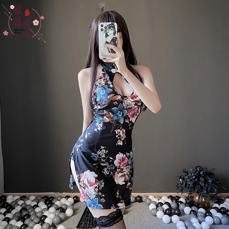 華やかな花柄が全体に施された艶やかなチャイナ服のドレスです。 ホルターネックデザインが首元を美しく演出し、女性らしいシルエットを引き立てます。 胸元の大胆な開きと両サイドのスリットが官能的な雰囲気を醸し出し、特別な夜を彩ります。 光沢のある生地が上品さと華やかさを兼ね備え、パーティーやイベントにぴったりの一着です。 伝統的なチャイナ服の要素を取り入れながら、現代的なアレンジを加えたドレスとなっております。