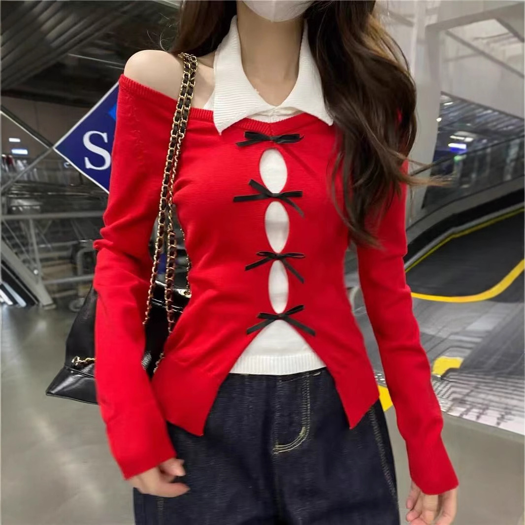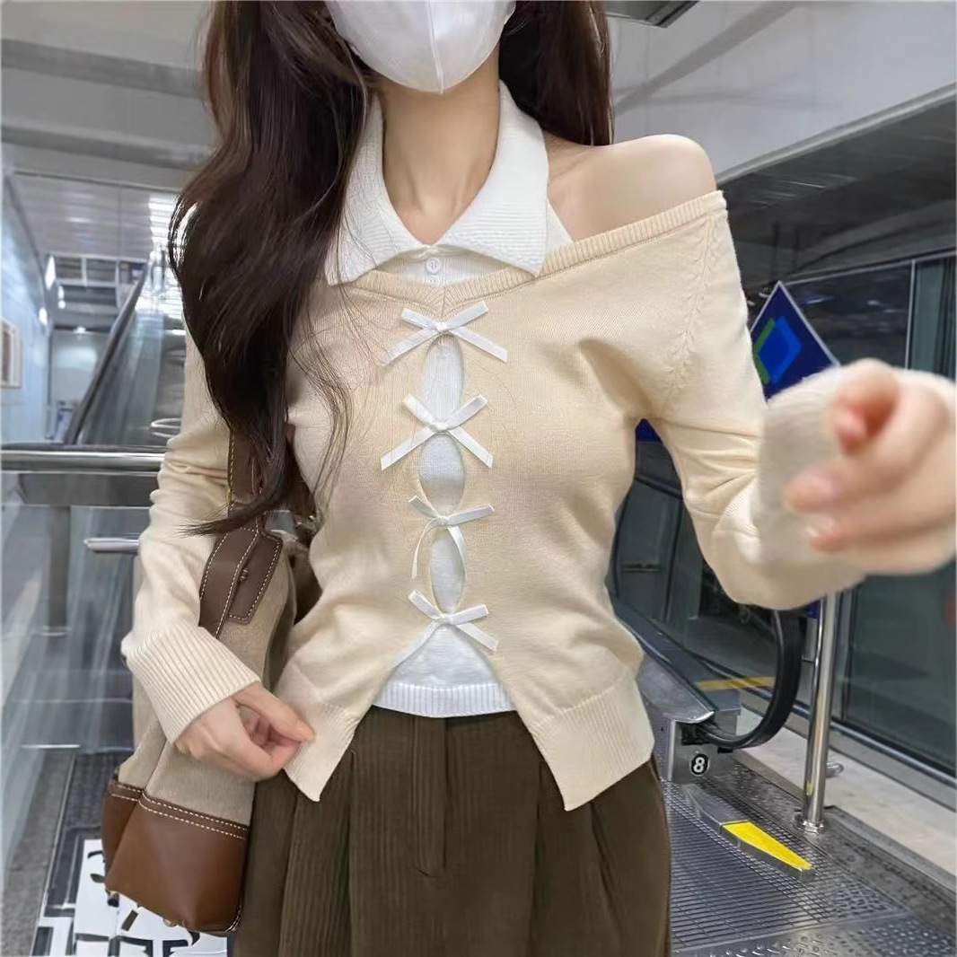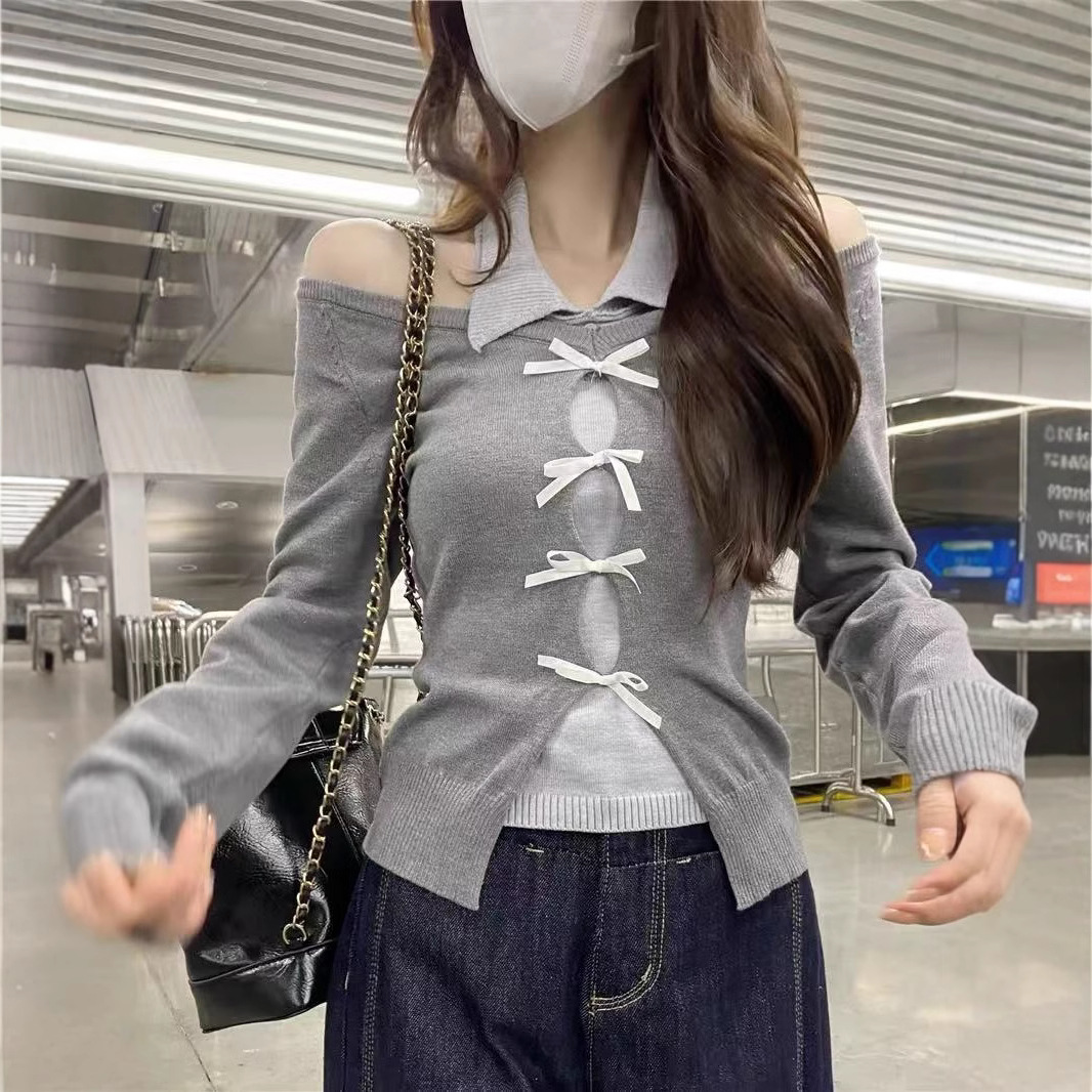 肩開きのデザインで女性らしさを引き立て、インナーとの重ね着でさまざまなコーディネートが楽しめます。
