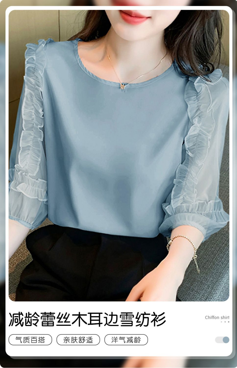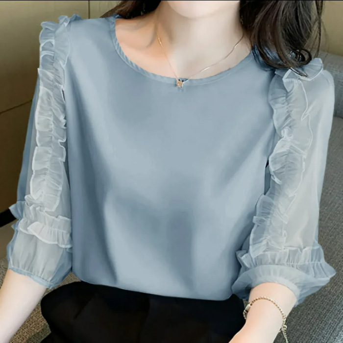 ふんわりと風をまとうような、軽やかなシフォン素材のブラウスです。