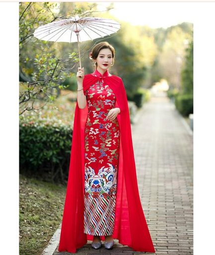 華やかな鳳凰と花鳥の刺繍が全体に施された格式高いチャイナ服です。