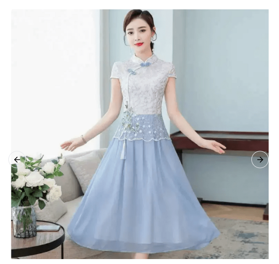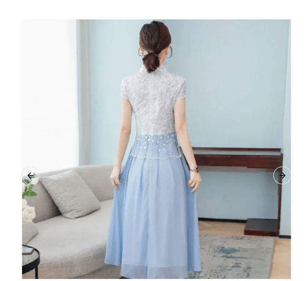 上品な刺繍レースと透け感が美しいチャイナ服デザインのワンピースです。