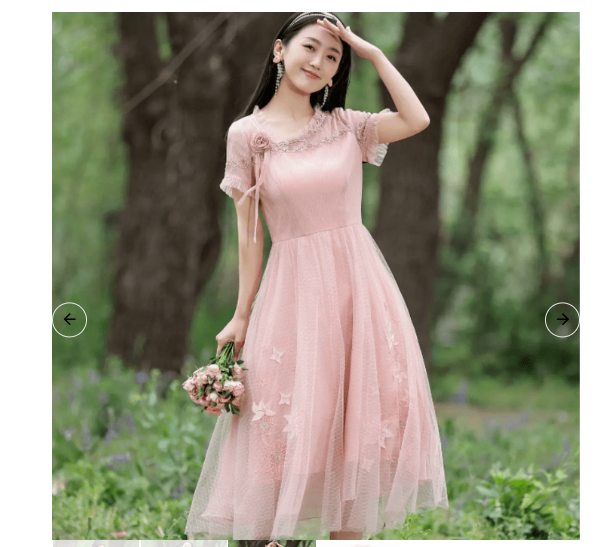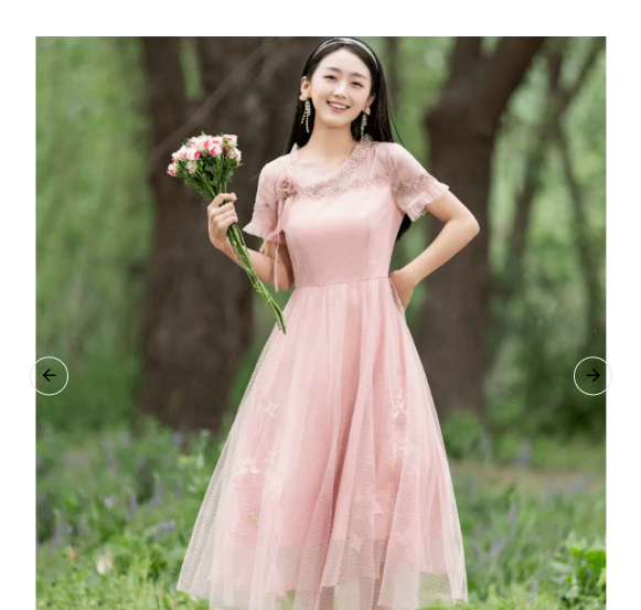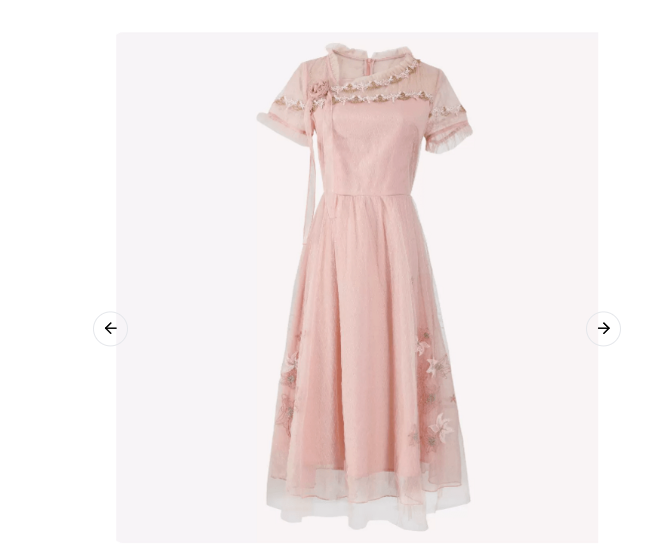 繊細な花柄刺繍が施されたチュール素材の袖が可憐な印象を与えるチャイナ服です。